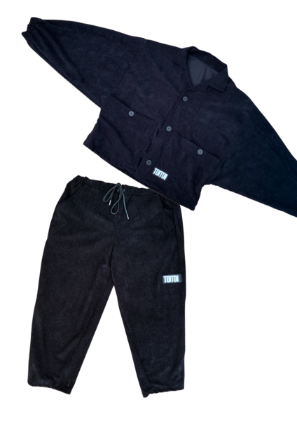 Lounge wear style soft elasticated stretchy corduroy 80s style jacket + pants.